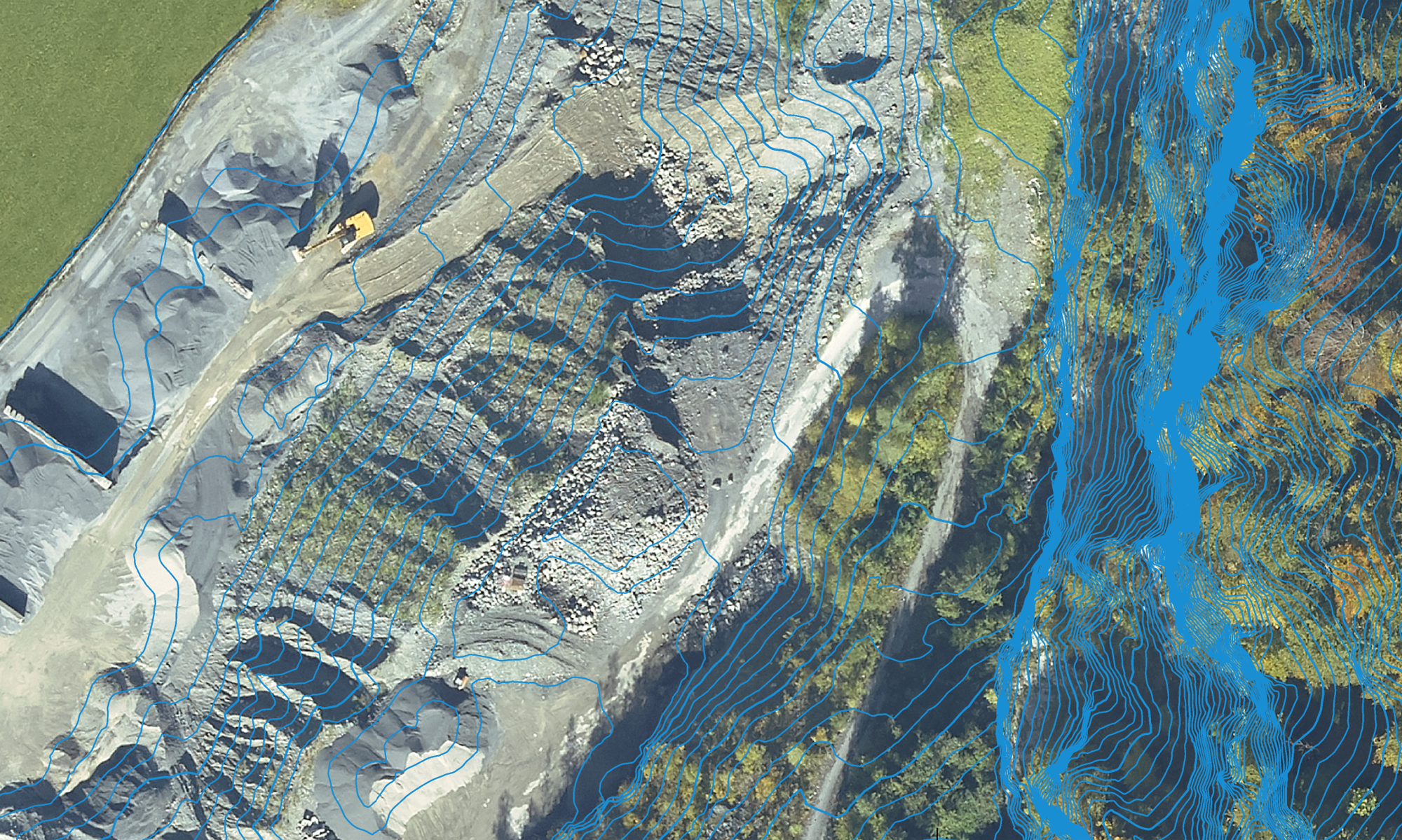 Die Planung von Abbau und Sicherheitssprengungen erfordert eine genaue Geländemodellierung. Wir erfassen Steinbrüche oder labile Felspartien mittels Laserscanner und fotogrammetrischen Aufnahmen und visualisieren diese anschaulich in 3D. Kombiniert mit Profilen, Vorgabewerten und Volumen liefern wir diese Daten dem Sprengfachmann und erarbeiten gemeinsam eine praxiskonforme Abbauplanung.