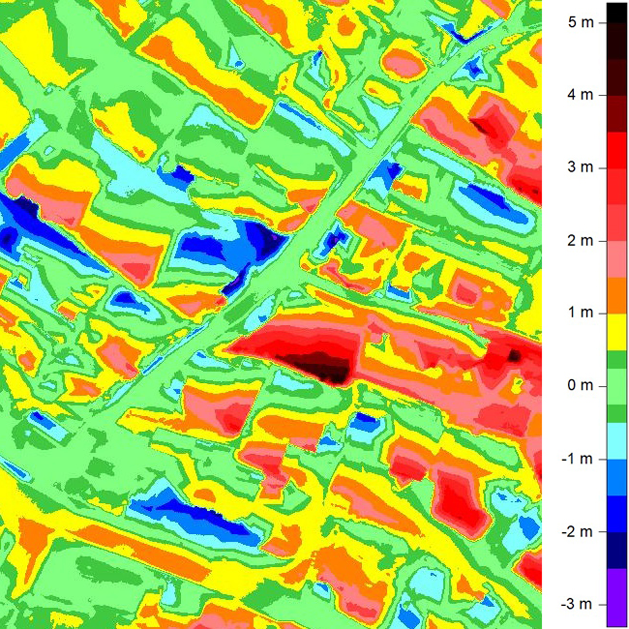 - Analyse von Geländeveränderungen durch Terrassierungen, Aufschüttungen oder Abgrabungen