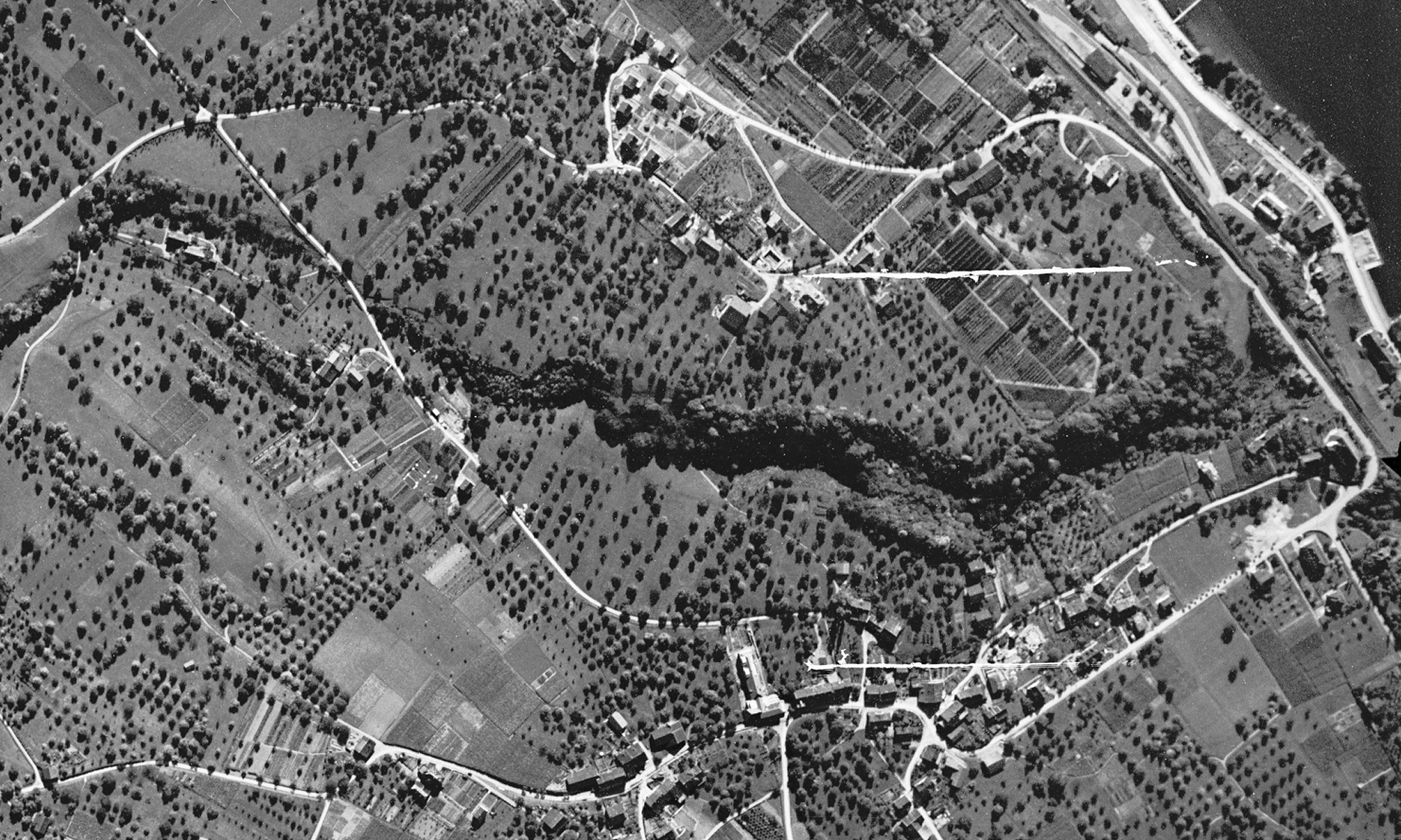 Genaue, flächendeckende Höhendaten werden erst seit wenigen Jahren erhoben, daher verwenden wir historische Schwarz-Weiss-Luftbilder für die Rekonstruktion der ursprünglichen Geländeform. Durch sorgfältige Orientierung der Luftbilder und präzise stereoskopische Auswertung erstellen unsere Fotogrammetrie-Spezialisten ein digitales Höhenmodell, das den Geländezustand früherer Jahrzehnte abbildet. Mit Luftbildern aus den 1950er Jahren können wir Geländedifferenzen mit einer Genauigkeit von ca. 50cm nachweisen. So lässt sich das massgebende Terrain für Bauprojekte nachvollziehbar bestimmen und als objektive Grundlage für Baugesuche, Planungen oder Einsprachen nutzen.