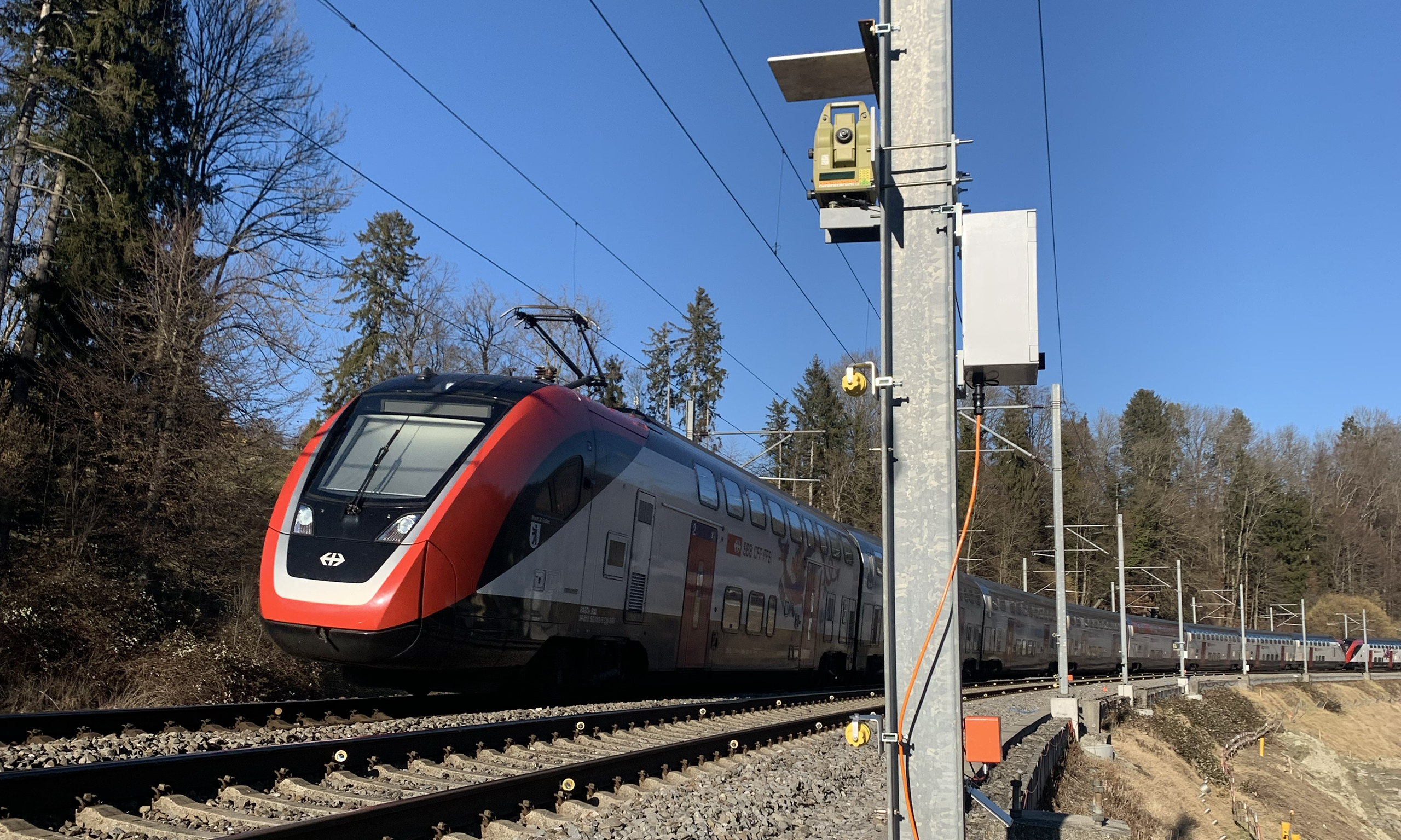 Mit modernsten Messsystemen überwachen wir kontinuierlich die absolute und relative Gleislage sowie Bewegungen von Masten. So können wir Deformationen frühzeitig erkennen und im Bedarfsfall Warn- oder Alarmmeldungen ausgeben.
