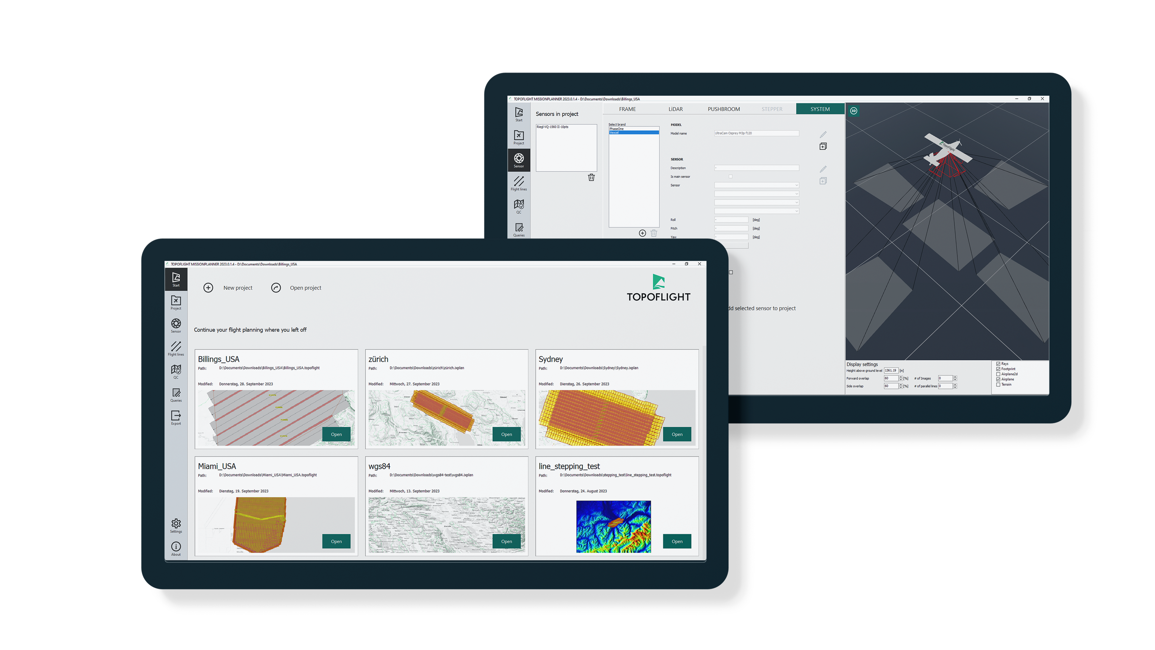 TOPOFLIGHT ist eine leistungsstarke Softwarelösung zur verlässlichen Planung von 3D-Flügen für fotogrammetrische und LiDAR-Messungen. Durch die Integration digitaler Höhenmodelle sorgt TOPOFLIGHT für höchste Genauigkeit und weniger Bildaufnahmen. Dies spart Zeit und reduziert Kosten.